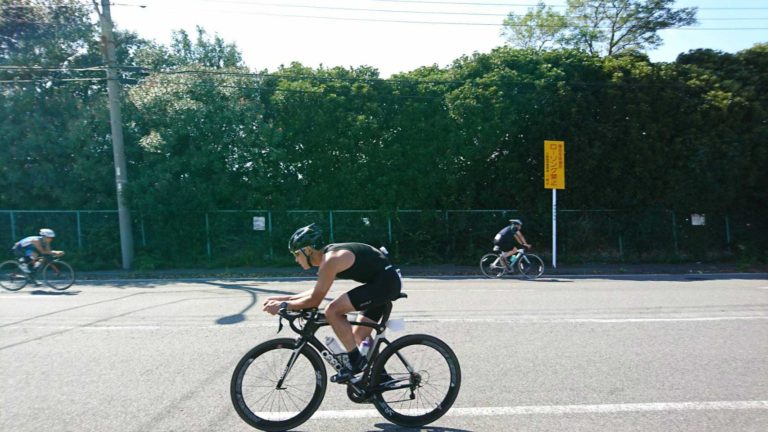 あまり回しすぎるとランで足が…とのチキン気質は当然の様に首をもたげてきますが、前回の木更津でビビりすぎてバイクパートをセーブしてしまったのがどうにも不満だったのと、それに何より今年エントリー最後の大会という事で「ええいやったれ!!」とばかりにスピードを出してみました。トランジションエリア近辺及びそのすぐ先の折り返し地点では観客の皆さんが応援してくれていまして、それまでの大会でも思ったのですがそういう声援ってホントに元気づけてくれます。