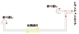 ですが長い方の直線コースの一部…往路側の、上の図だと「右側通行」の字の下の→先端のもうちょっと先ぐらいだったかな?の舗装が結構ガタガタでして、ただでさえスピード重視でクッション性やら乗り心地は二の次のロードバイク、加えて私はグローブも着用しませんので路面の悪さがかなりダイレクトに伝わってきて厳しかったです。