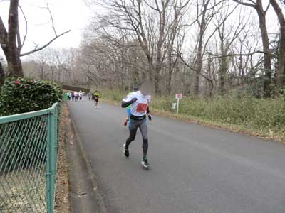 このコース、スタート&ゴール地点である「運動広場」周辺以外では円弧を描く周回コースではなく、あっちまで行っては折り返しで帰ってきてそれからまた別の所まで行ったら折り返して戻ってきて…という行って帰って行って帰ってを何度も繰り返すコースでして、それはつまりたまに下り坂があってホッとさせるかと思いきやすぐ後に逆向きに引き返してきて今度は登らなければならないという感動するほど底意地の悪いコースであることを意味します。