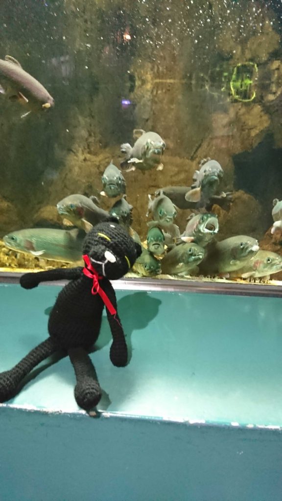 絶滅危惧種のマークがついているものが多く、生態系が変わってきているんだなと実感しました。オオサンショウウオが思っていたより大きかったのでびっくりしましたが、外来種のサンショウウオがさらに大きくてびっくり。川底であんなのに触ったら、さぞや怖いだろうな。叫んでしまいそうです。なぜか、ほとんどの魚がこちらを向いているという水槽もありました。魚の正面顔ってあんまり見ないですよね。なぜ、こっちを見ていたんだろう。