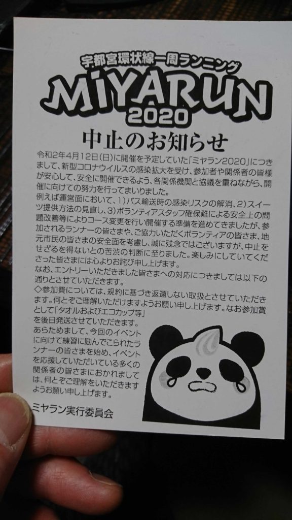 ・4月には人生初の42.195㎞となるはずだった宇都宮でのフルマラソンも中止