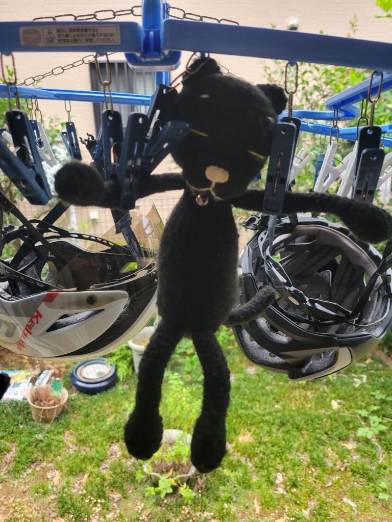ハンドルに座らせていたリリィさん(編みぐるみ)が