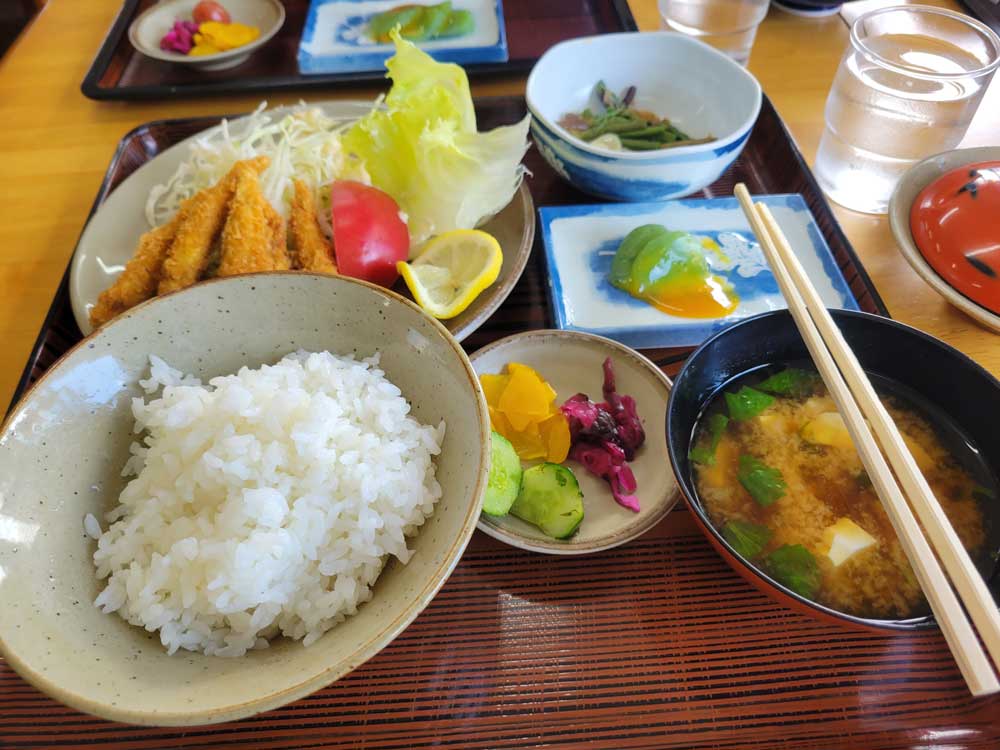 その後は湖畔のお店で昼食、私はわかさぎ丼でヨメはわかさぎ定食をいただきました。