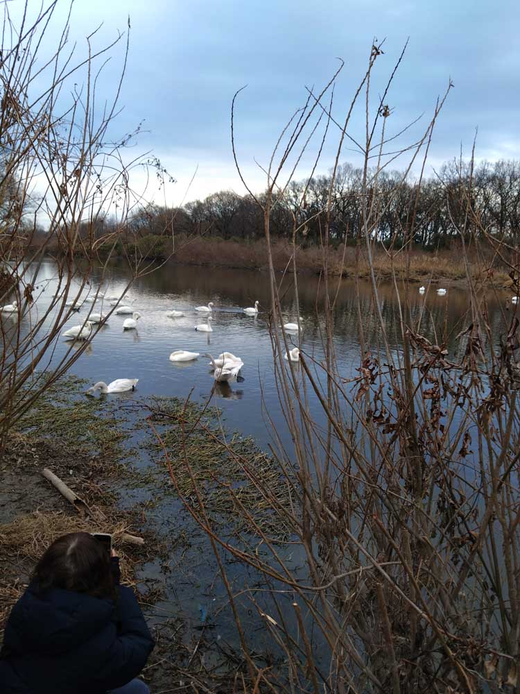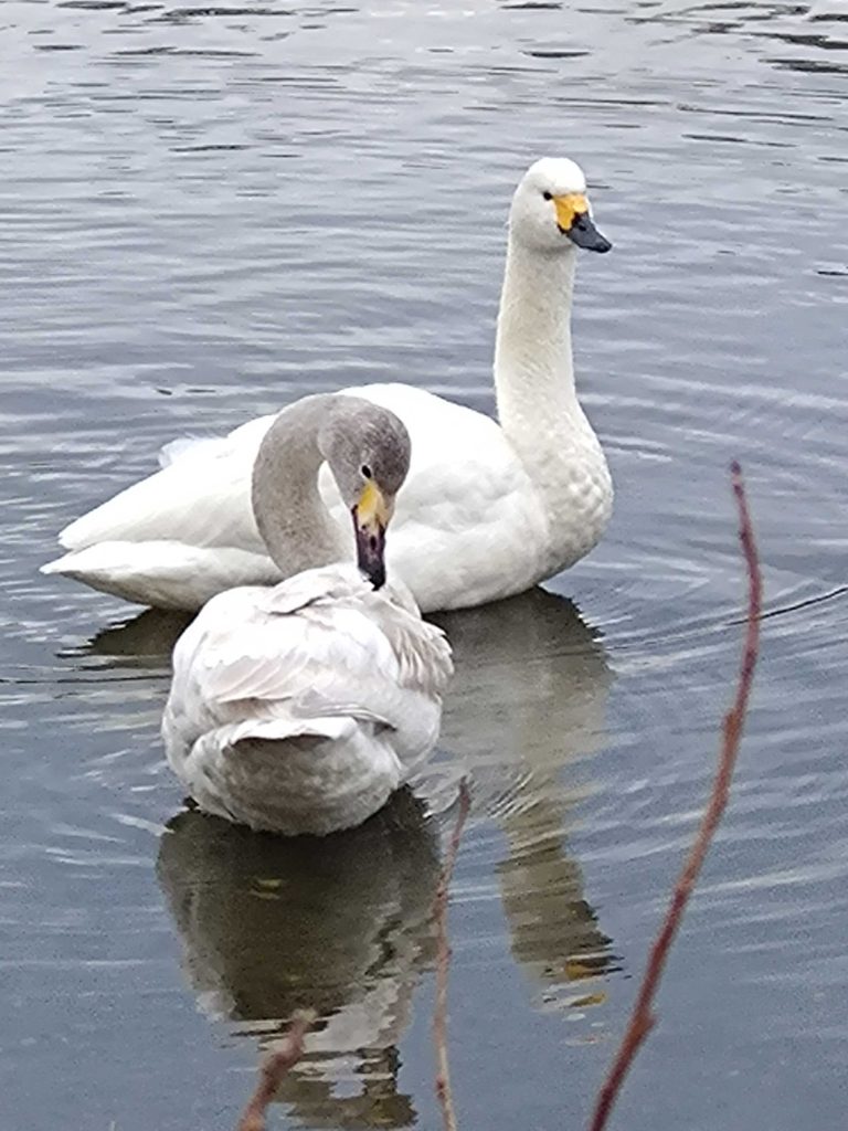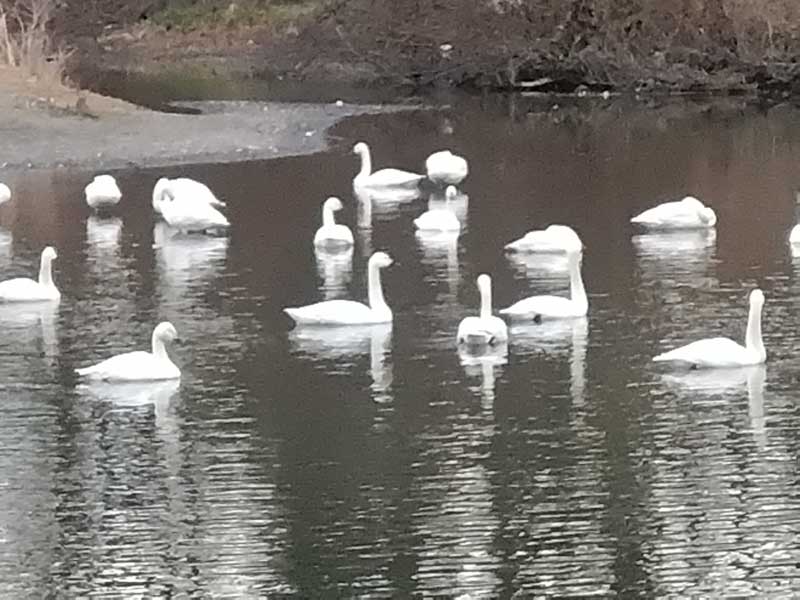この時間にコハクチョウを見に来たのは初めてだったのですが、以前の午後に来た時とは違ってコハクチョウたちがとても賑やかに鳴いていたのに驚かされました。