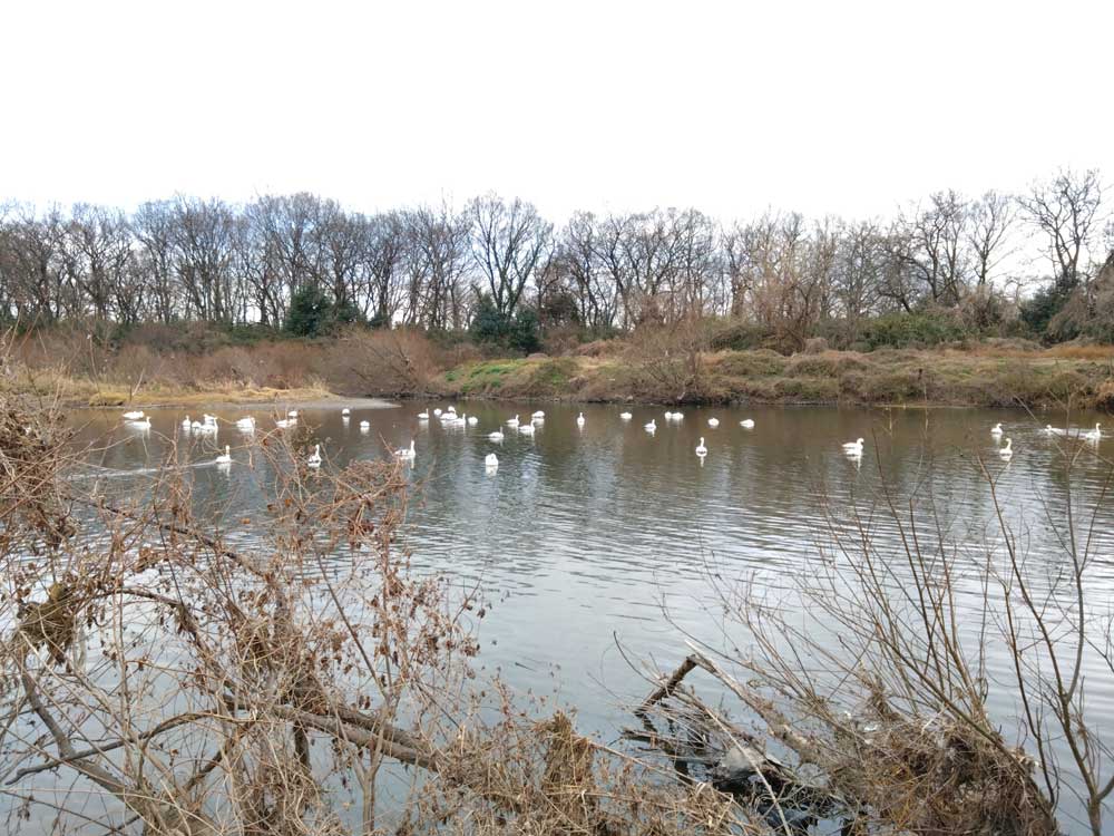 7時過ぎに家を出て、8時半前にはもはやお馴染みの川島町のコハクチョウ飛来地へ。