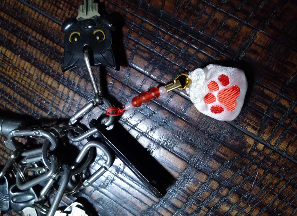このお守りはペットが身につけるモノではなく「ペットのことを願って飼い主自らが身につける」という事なので、2個授けていただきましてヨメとワタシそれぞれが所持。
