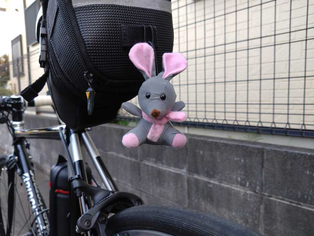 ちょうどその頃に到着したロードバイク二人組…同世代ぐらいの、おそらくはご夫婦かな?というおふた方の男性のサドルバッグ下で、どうにも見覚えのある、というか私のサドルバッグにぶら下がっている物と同じ物に見えてしょうがないマスコットが揺れているのですが、でもコレって市販品じゃないはずだし…。