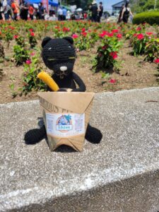 少し走ってコンビニで休憩してから、いよいよブラジルです。意外とこぢんまりした公園でやってるんですね。屋台がいくつも出ていて、国旗がついています。皆さんは手慣れたものでそれぞれ好きな屋台で好きなものを買うために並んでいます。