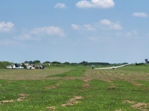 10時30分ごろに川に着きました。上空には飛行機が飛んでいます。模型?と思ったけど人が乗っているようです。河原に着陸するところが見えました。帰ってから偶然テレビでやっていたので知りましたが、グライダーという種類の飛行機らしいです。川にはジェットスキーが何台もいました。