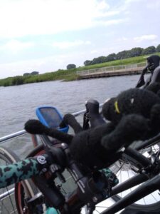 さて、川を渡るのですが、渡し船で自転車ごと渡ります。埼玉側から乗る時は旗を揚げます。これは県道の一部という扱いになっているので、渡し賃はかかりませんでした。