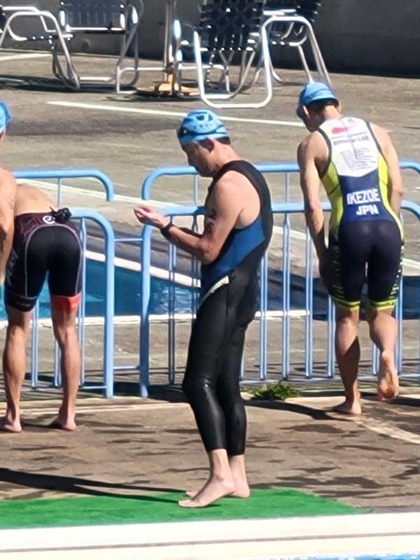現地に着いて受付を済ませてトランジットをセットして、試永を済ませたらプールサイドに集合して開会式を待ちます。